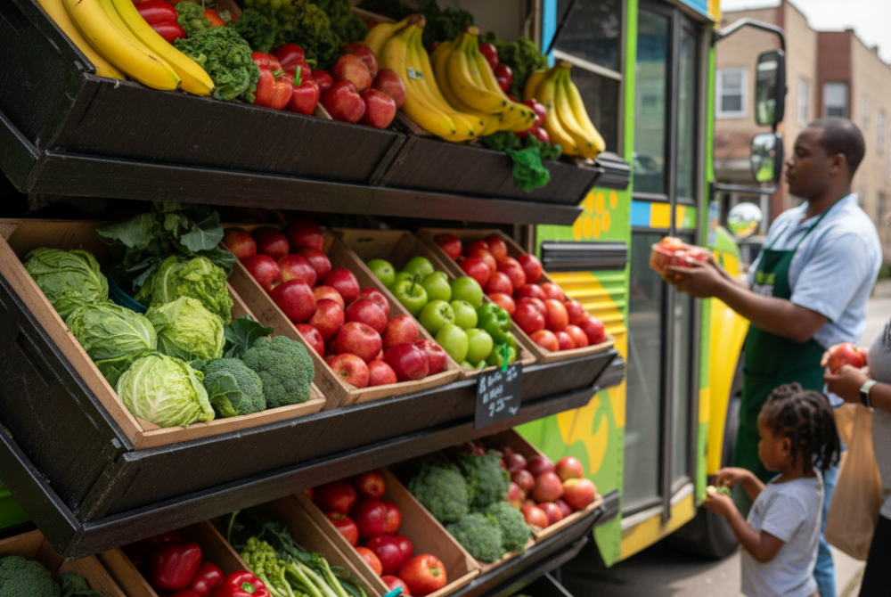 시카고에서는 '프레시 무브스 모바일 마켓'이 성공적인 사례로 꼽혀요. 이 프로그램은 낡은 버스를 개조해서 이동식 식료품점으로 운영하고, 식량 사막 지역에 신선한 과일과 채소를 공급해요. 프레시 무브스는 매주 정해진 일정에 따라 다양한 지역을 순회하며 신선한 식품을 판매해요.