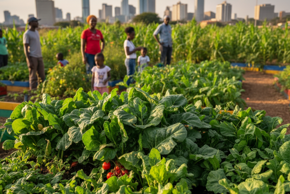(도시 안팎에서 채소, 농작물 및 가축을 생산하는 도시 농업은 아프리카에 널리 퍼져 있으며, 도시 인구를 먹여 살리는 데 중요한 역할을 해요)